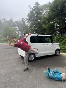 腰痛で1ヶ月ほど運動を全くしていなかったので粂野さんに付き合ってもらってリハビリ登山に行って来ました。暑さでバテないか心配でしたが、幸いなことに当日は曇り時々小雨の快適な気温でした。景色はほぼ見れなかったけど一応山頂に登れたので良かったです。翌日からしばらく筋肉痛となりました。