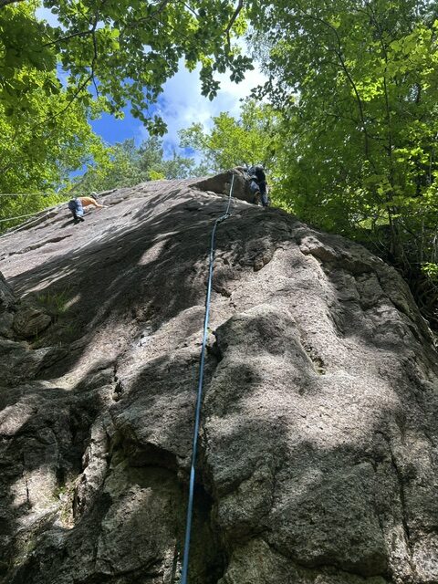 2P目は斉藤がリードした。ある程度登って、ダイクをトラバースしたあと、足のフリクションをフルに活かして登るのだが、勇気が必要。息を十分に整えて、通過。緊張感のあるピッチだった。3P目は長野がリードした。最後は終了点を通り過ぎて、木で支点構築してビレイするのだが、その意識が強すぎて、トポよりも早い位置で左に巻いてしまった。4P目は斉藤がリード。大きな穴が空いたスラブを登って、右上するクラックに入っていくのだが、クラックにカムを決めるまでプロテクションが無く、とても怖いピッチであった。トポには「メンタルの核心部」とあったが、まさにその通りであった。5Pは長野がリード。最後のフェースで抜けるところが、難しく感じた。懸垂を二回繰り返し、ガマルートの取り付きまで戻ってきた。14時くらいで少し早いが、この日は町に下りて、お風呂と食事を済ませることにした。ヘルシーパークの温泉は定休日だったため、南相木村の滝見の湯に浸かった。夜ご飯は焼き肉屋ふじもとに行った。疲れを十分に癒し、キャンプ場で就寝した。